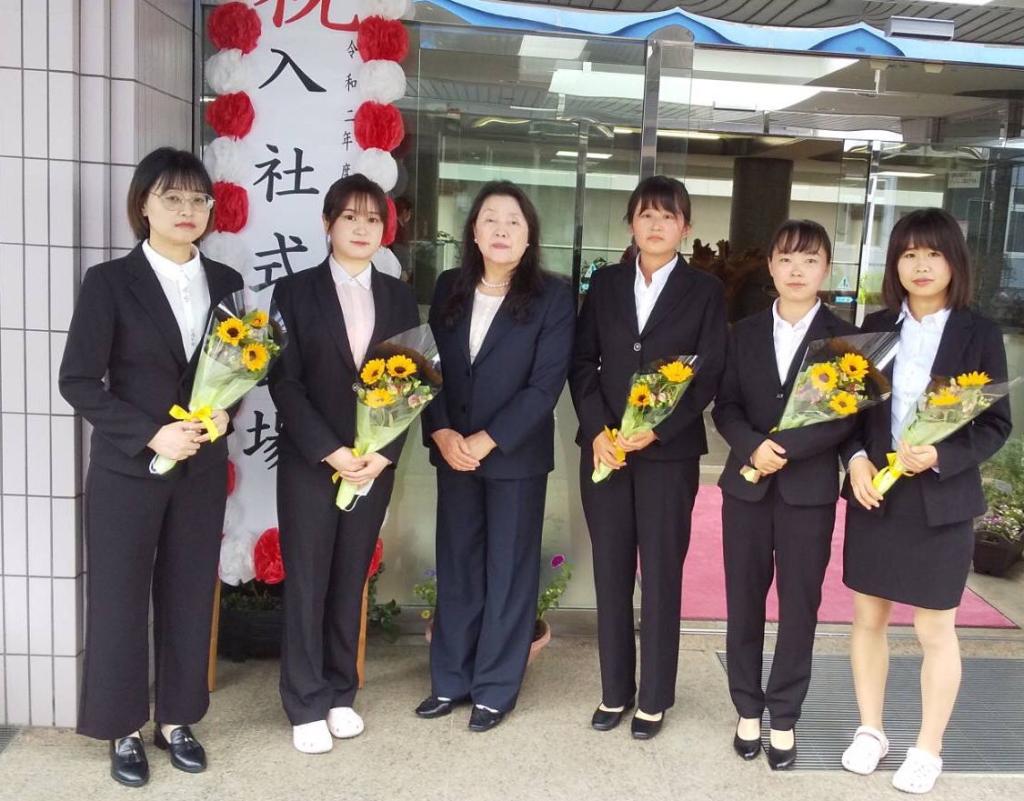 2020年6月,yl8858永利护理专业毕业生郭奕鑫、杨隽、王亚茹,朱旭男就职日本海老原集团(海老原医院・养老院),海老原集团的海老原登喜子理事长参加了就职仪式